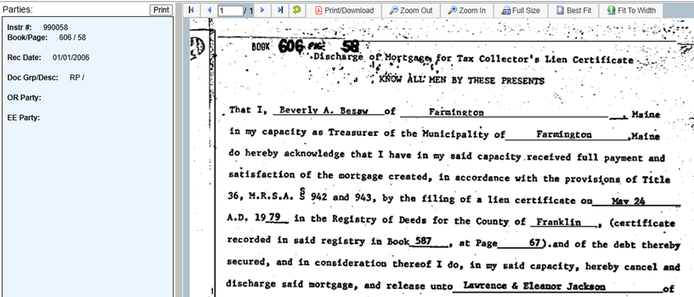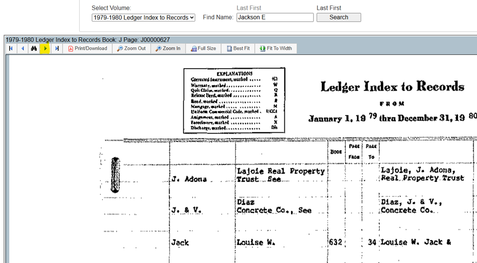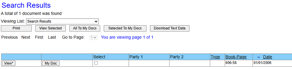When you locate the name you’re searching, the Books and Pages of the documents are listed.